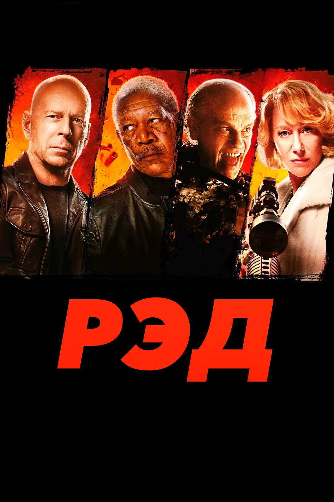 - В ролях: Брюс Уиллис, Джон Малкович, Морган Фриман, Хелен Миррен, Мэри-Луиз Паркер, Карл Урбан, Брайан Кокс, Ричард Дрейфусс, Джулиан Макмэхон, Эрнест Боргнайн